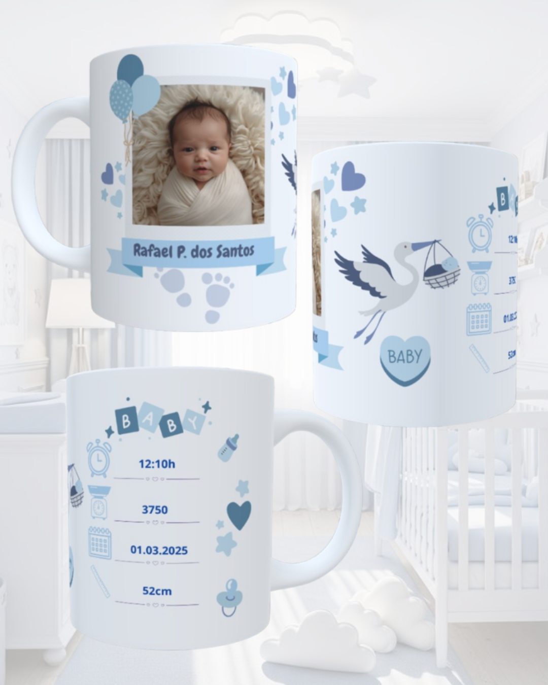 Comemore a alegria e os momentos inesquecíveis do nascimento com a nossa Caneca Personalizada Recém Nascido. Este item é ideal para eternizar as memórias do início da vida do seu bebê de uma maneira prática e encantadora. Perfeita para pais, amigos e familiares que desejam ter uma recordação especial e cheia de significado.