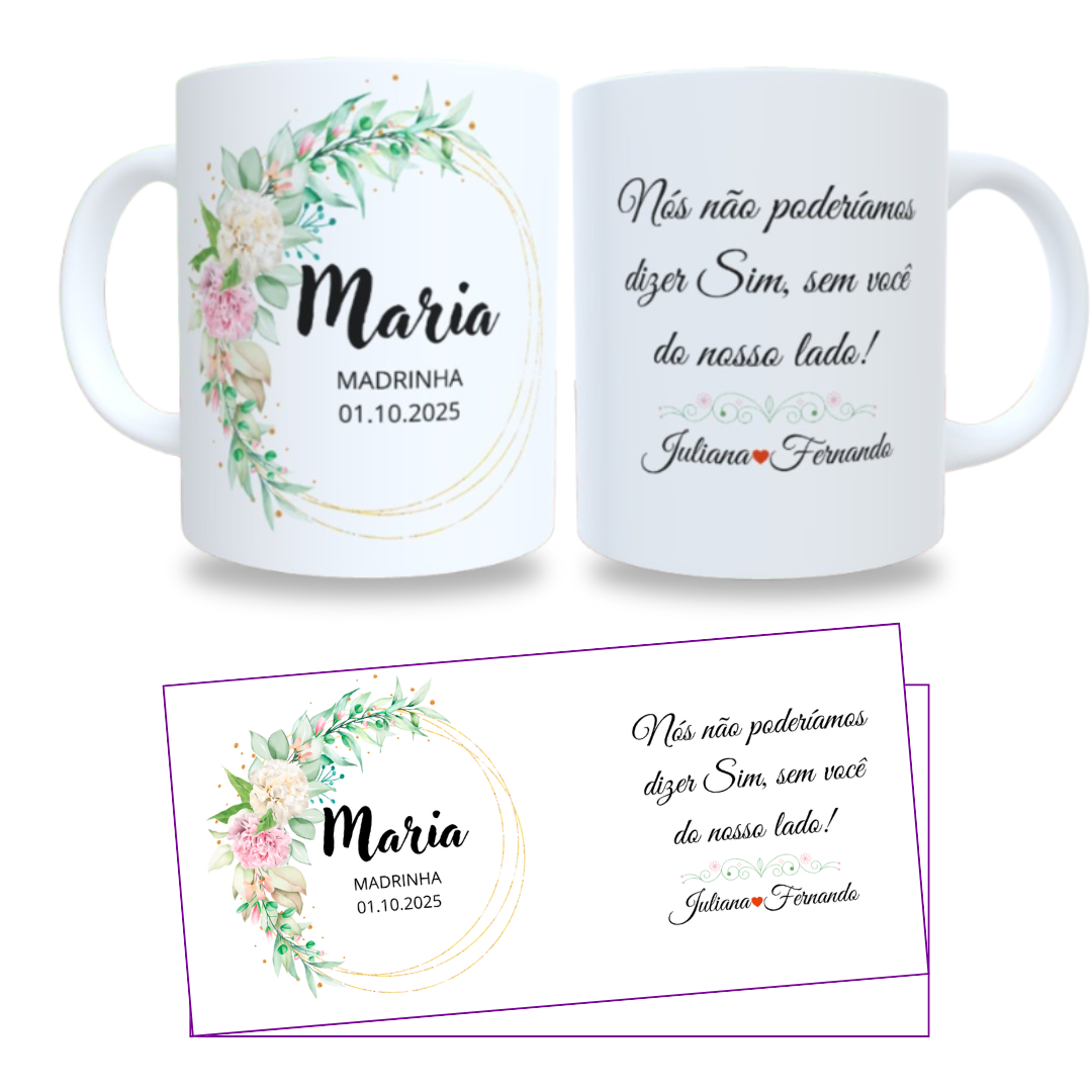 Elaborada com atenção aos detalhes, cada caneca é feita para refletir o estilo e a essência dos noivos e de seus convidados mais queridos. Você pode personalizar as cores, ilustrações e até mesmo incluir mensagens significativas, tornando cada peça única e especial. Seja com o nome dos noivos ou frases inspiradoras que celebra a união, esta caneca combina sofisticação e praticidade.
